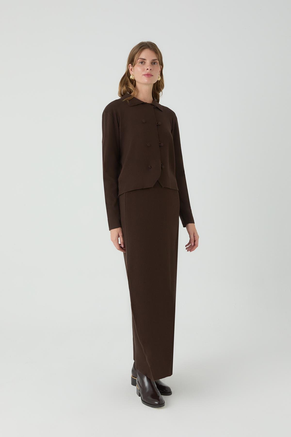 TRİKO ETEKLİ TAKIM KAHVE