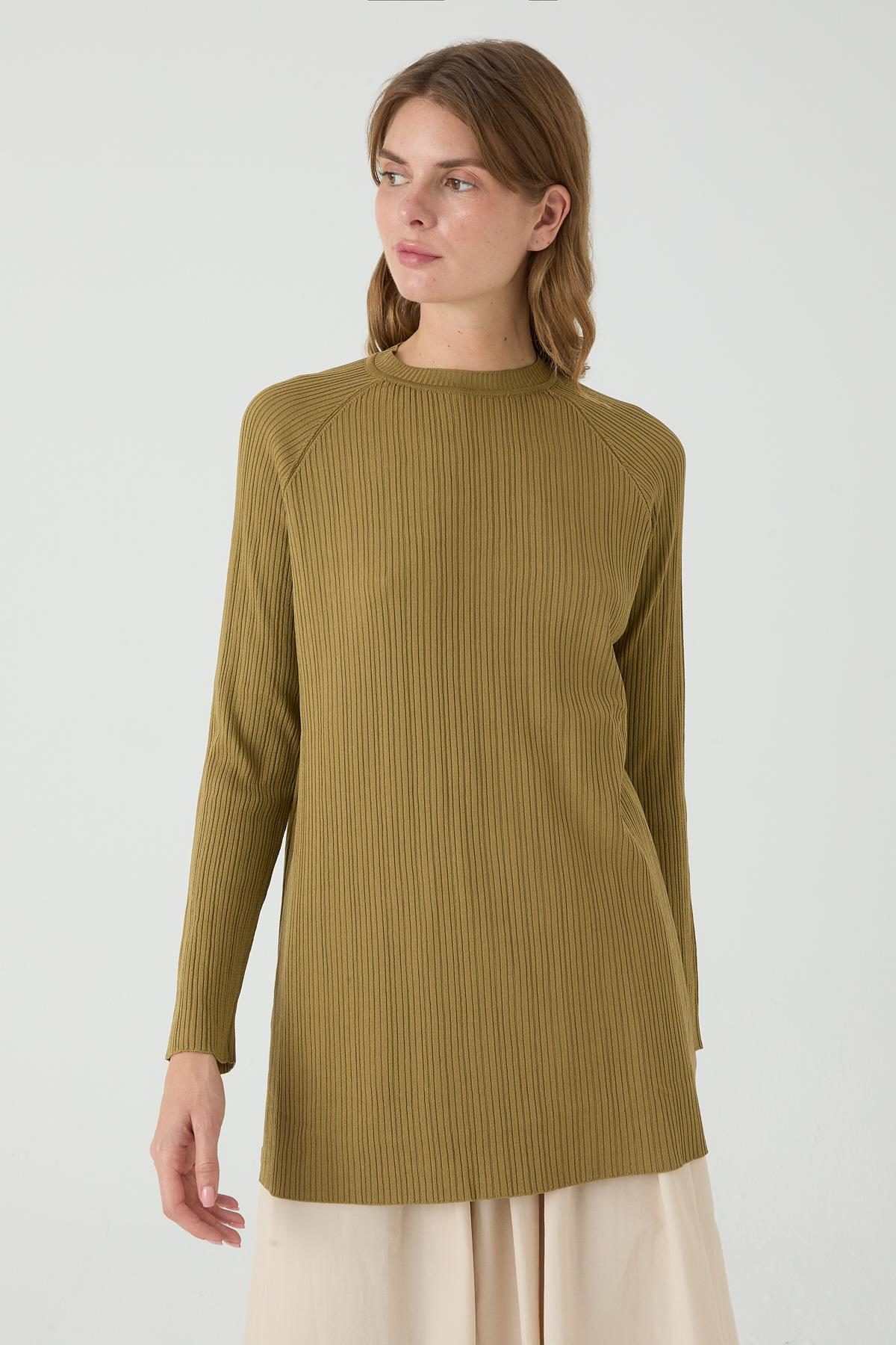 Uzun Tunik Cotonelit Yağ Yeşili (INS0023-69)